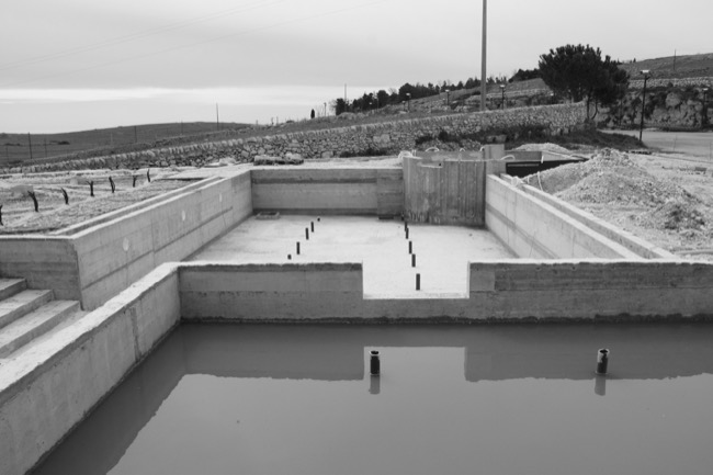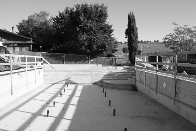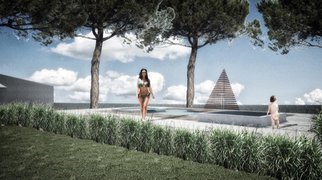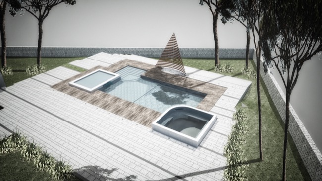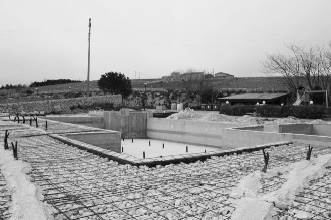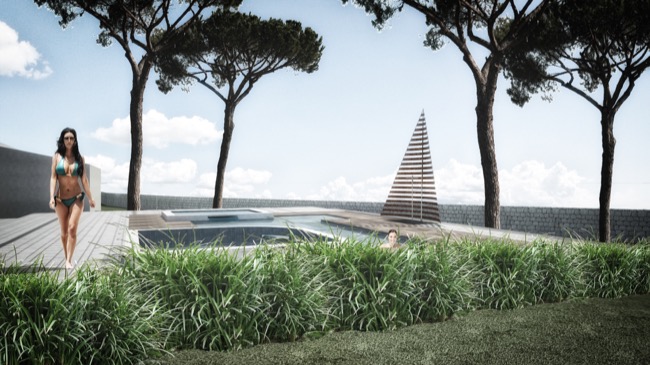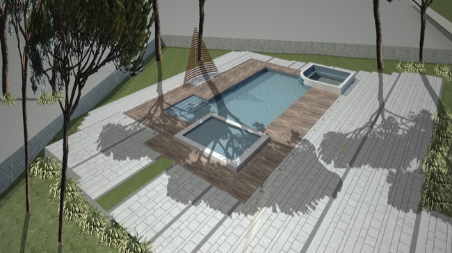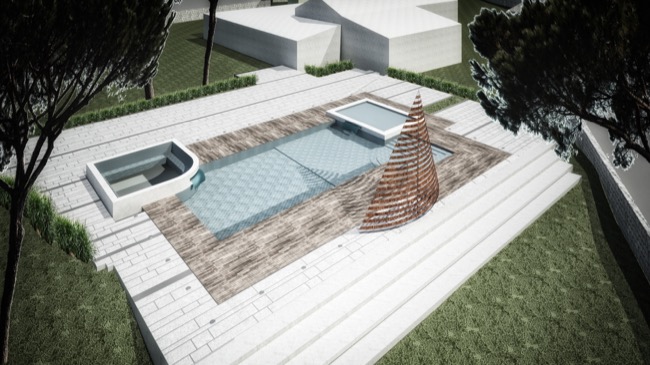 Qualche mese fa i titolari di una struttura alberghiera, mi affidarono l’incarico di progettare un’area attrezzata con piscina a servizio della struttura ricettivo – alberghiera esistente. Considerando le peculiarità del sito collinare, nonché il paesaggio circostante, ho proposto un progetto che legasse l’albergo alla piscina, in modo da utilizzare gli spazi comuni per conviviali e al tempo stesso permettere agli ospiti l’utilizzo delle vasche. Queste ultime infatti sono state previste di tre tipologie, una centrale maggiore a profondità variabile con accesso da comodi gradini, una inferiore e poco profonda destinata ai bambini ed una superiore con funzione di piccola SPA all’aperto. Poiché l’area d’intervento ricadeva in Fascia di Tutela 2, la Soprintendenza BB.CC.AA ha dato parere favorevole alla mia proposta progettuale, di pavimentare l’area circostante alle vasche con materiali naturali tipici del paesaggio circostante. In forza a tali indicazioni, ho previsto di utilizzare basole di calcare duro degli Iblei finemente bocciardate e posate a ricorsi di larghezza variabile, intervallati irregolarmente da strette basole in pietra lavica. Tra tali ricorsi, ho previsto delle aree rettangolari a verde in modo da creare delle scansioni visive nell’area prevalentemente pavimentata. Per dare risalto alla piscina, ho previsto di pavimentare il bordo vasca in Decking di Iroko montato a listoni, in modo da richiamare visivamente le strutture in legno oggi adibite alla ristorazione. In prossimità della piscina, infine, il progetto prevedeva una vela realizzata a doghe orizzontali in acciaio Corten, quale schermatura delle docce a servizio della vasca. Con l’inizio dei lavori, come spesso accade nella nostra professione, la committenza tende ad arrangiare in itinere le scelte progettuali pattuite insieme ed approvate dagli uffici competenti e benché alcune delle soluzioni possono risultare condivisibili altre, di contro, risultano inammissibili. Per questi motivi, dopo le opere di carpenteria che hanno permesso in qualche modo la realizzazione delle vasche secondo gli elaborati grafici progettuali, ho ritenuto farmi da parte lasciando libera la committenza di esprimere tutta la propria creatività sulle rifiniture e quant’altro necessario per completare l’opera a perfetta regola d’arte... O quasi.