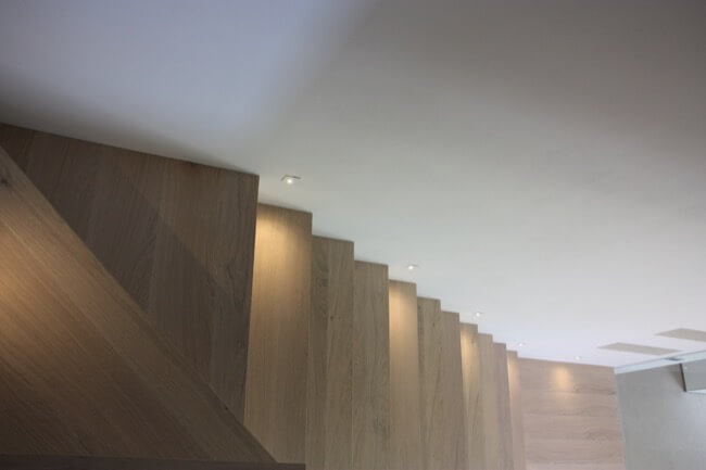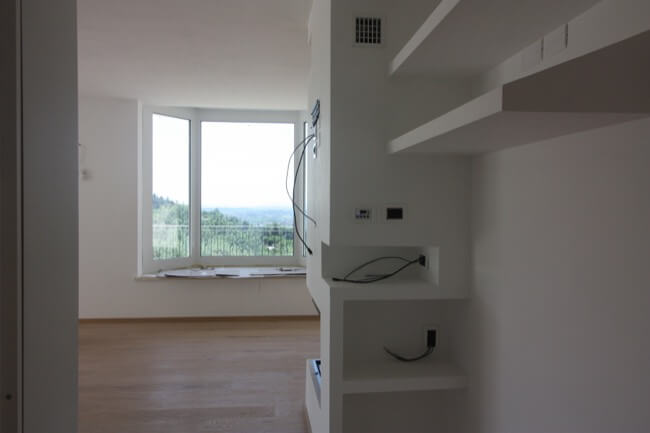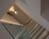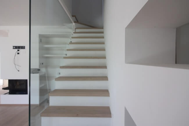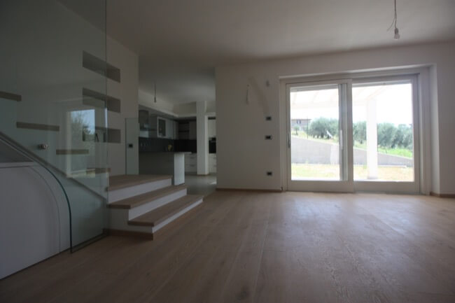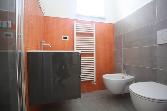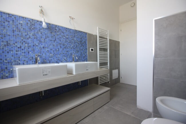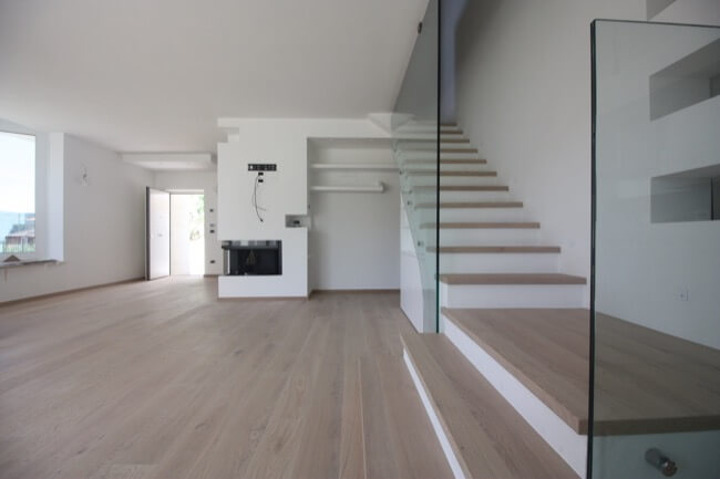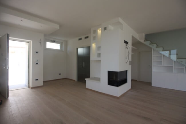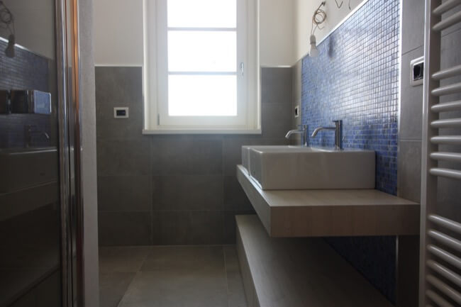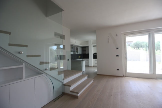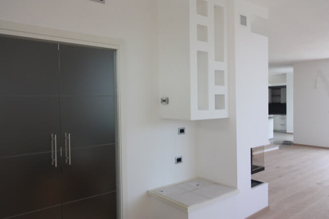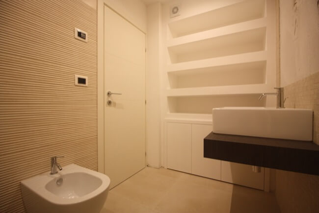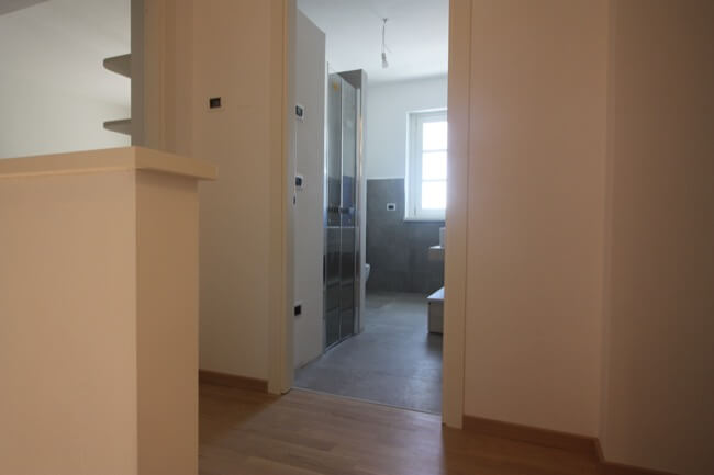 Nella primavera del 2017 una coppia di amici, avendo comprato una casa allo stato rustico, mi hanno chiesto di aiutarli a completarla. L’unità abitativa fa parte di un complesso residenziale molto elegante, sito in località San Marco, nell’immediata periferia di Perugia e si articola su un terrazzamento naturale del terreno, con un ampio giardino di pertinenza, con vista panoramica sulla vallata. L’appartamento, realizzato su due livelli, è composto da una zona giorno a piano terra e da una zona notte a primo piano. Durante i primi sopralluoghi in cantiere, abbiamo valutato le varie soluzioni per rendere la scala di collegamento fra i due piani, parte integrante della zona giorno. Si è pensato così di chiuderla con delle lastre di vetro, fissate con degli attacchi puntuali, lasciando la parte sottostante a giorno, in prossimità del camino. La scelta di utilizzare partizioni trasparenti, ha conferito alla scala, sia leggerezza, sia sicurezza per la fruibilità dei proprietari. Avendo scelto una pavimentazione in parquet per tutta la zona giorno, inoltre, si è ritenuto coerente utilizzare la stessa finitura anche per i gradini. Nella zona giorno, dunque, sono stati utilizzati materiali e finiture a tinte tenui, anche per rendere più versatili i vari ambienti, qualora fossero arredati con mobili un po’ più classici. L’intervento progettuale di arredo, ha interessato anche i bagni ai vari piani della casa, prevedendo l’utilizzo di pavimenti e rivestimenti più colorati, pur mantenendo uno stile sobrio ed elegante.