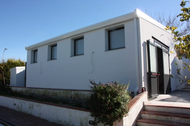 Qualche anno fa un cliente mi dette incarico di progettare un piccolo magazzino a servizio del fondo agricolo. La sua giovane azienda, rivolta al settore dell’olivicoltura, aveva necessità di una struttura destinata sia allo stoccaggio dei prodotti ottenuti dal territorio, sia alla promozione degli stessi sul mercato nazionale ed internazionale. Avendo a disposizione alcuni locali a servizio dell’abitazione principale, peraltro in prossimità di una gradevole vasca di raccolta acque, con il proprietario si è deciso di realizzare l’opera, prevedendo una nuova struttura metallica in aderenza ai locali esistenti e prospiciente alla vasca. Le modeste dimensioni del manufatto, non hanno pregiudicato la caratteristiche morfologiche del sito, permettendo un gradevole inserimento volumetrico su una zona caratterizzata da vari terrazzamenti degradanti a valle. Previa acquisizione dei vari pareri tecnici, quali Soprintendenza BB.CC.AA e Ufficio Ripartimentale delle Foreste, ho ritenuto di scegliere una struttura metallica leggera per lo stoccaggio dei prodotti, in aderenza ai locali esistenti destinati ai servizi e agli accessori. Durante la realizzazione si è provveduto inoltre di predisporre un isolamento termico perimetrale su tutta la nuova struttura, per evitare eventuali alterazioni dei prodotti. Considerando l’esposizione a Sud – Ovest, infatti, la scelta di operare delle aperture modulari nella parte alta del prospetto, è stata giustificata per evitare l’irraggiamento diretto dei piccoli silos collocati all’interno della struttura. La volumetria semplice, le finiture cromatiche tenui e l’uso di materiali adeguati, ha permesso un gradevole inserimento del manufatto edilizio nel territorio di Chiaramonte Gulfi, già noto per le sue vaste estensioni di ulivi e per la presenza di vari insediamenti destinati alla olivicoltura.