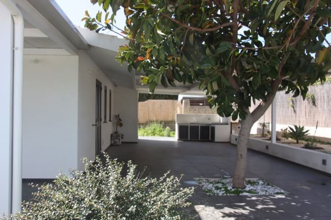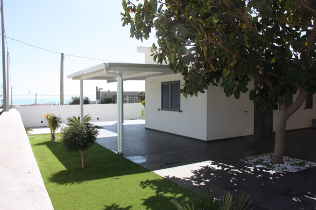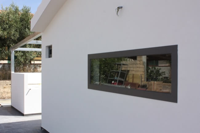 Nella primavera del 2016 un amico ha comprato una villetta unifamiliare realizzata negli anni ‘80 e ubicata nella frazione balneare di Marina di Ragusa. Con l’occasione mi ha incaricato di ristrutturarla in breve tempo per poterla rendere fruibile nella stagione estiva. La tipologia “a villa isolata” con una vasta pertinenza esclusiva a verde, ha permesso di elaborare un progetto semplice di ristrutturazione sia negli ambienti interni, sia nell’area verde intorno alla casa. Rispetto alla configurazione originaria, sono state riquadrate in proporzione le aperture sui prospetti, sono stati rifatti gli impianti di bagno e cucina, nonché gli impianti di climatizzazione. Nell’area esterna, compatibilmente alla morfologia esistente dei luoghi, ho voluto dare un po’ di movimento all’ingresso della casa, creando dei gradoni intorno ad una fioriera quadrata, per il superamento dei diversi livelli altimetrici. Ho predisposto anche una piccola cucina esterna nella parte più nascosta dell’area posteriore per le cene estive all’aperto. Le finiture cromatiche degli intonaci e dei materiali, su richiesta del proprietario, sono state realizzate attenendoci ad una scala di grigi che, nonostante il carattere mediterraneo del sito, ha contribuito a dare alla villa un tono più moderno, austero e minimale.