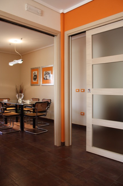Nel 2007 dei clienti mi chiesero se potevo occuparmi del progetto relativo al completamento di un appartamento lasciato allo stato rustico da diversi anni e considerata l’ampia superficie a loro disposizione, era loro intenzione ricavarne due unità abitative. Il progetto, così, interessò due unità residenziali delle quali una maggiore riservata ai proprietari ed una minore riservata agli ospiti. L’esposizione ad angolo sulle due vie ha permesso di realizzare la zona giorno in corrispondenza delle aperture maggiori, la zona notte invece ha trovato ubicazione nella parte interna in corrispondenza del cavedio. Le finiture hanno tenuto conto sia degli arredi esistenti, sia del periodo storico nel quale è stato realizzato l’edificio, conferendo agli ambienti un tocco di contemporaneità.