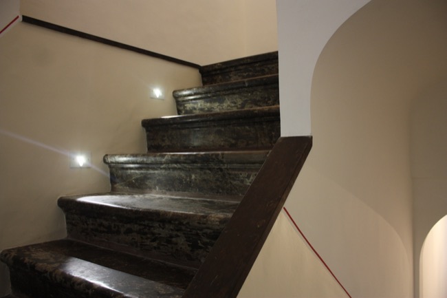 Da allora ai primi anni del nuovo secolo non fu eseguito alcun intervento di manutenzione, lasciando il Palazzo al suo costante degrado. Dal giugno 2011, con il passaggio di proprietà ad altro committente, sono stati eseguiti interventi di restauro conservativo sui prospetti e di riuso architettonico negli ambienti interni, finalizzando l’intervento alla rinascita del Palazzo e restituendo ad esso la sua originaria identità. Eliminando le finiture posticce, ho provveduto a ripulire tutti gli elementi lapidei da patine e croste nere, riportando alla luce quegli elementi formali che da sempre hanno caratterizzato la storia del Palazzo. Durante l’opera di pulitura è emersa la bicromia data dall’uso del calcare duro in facciata e della pietra pece nelle mensole dei balconi e dei cornicioni.