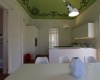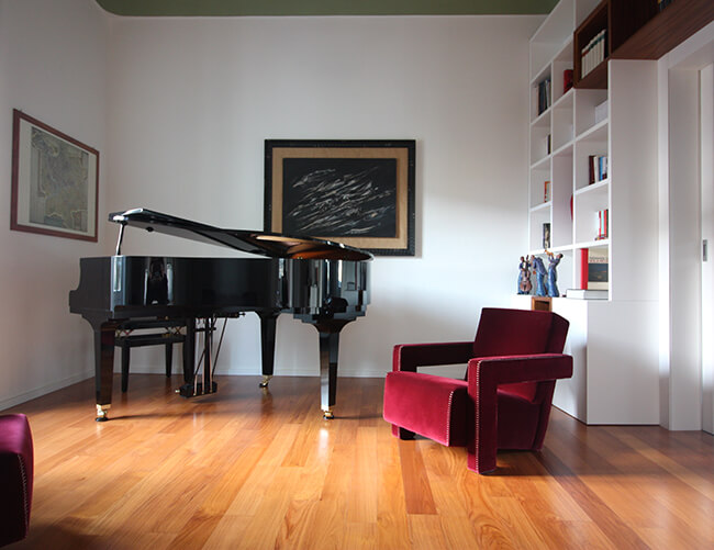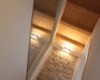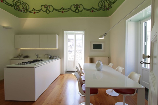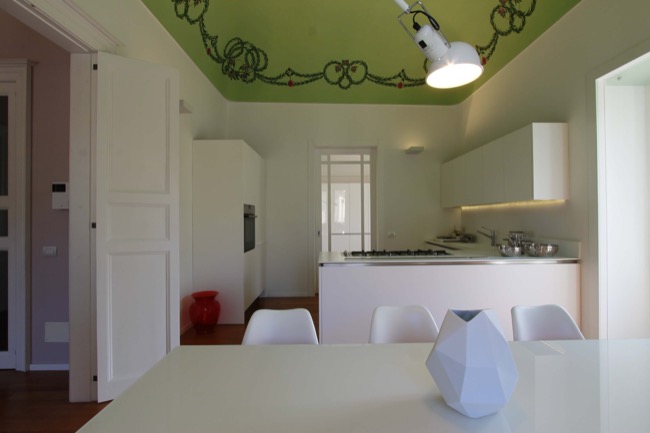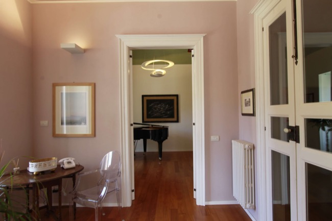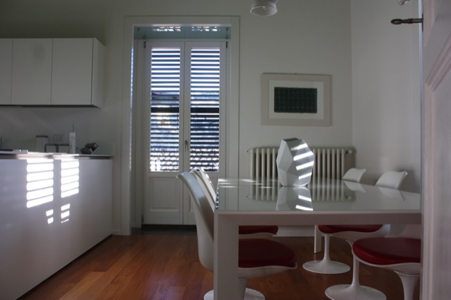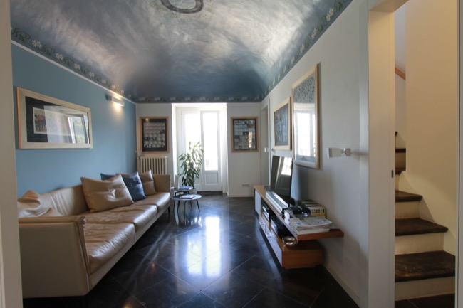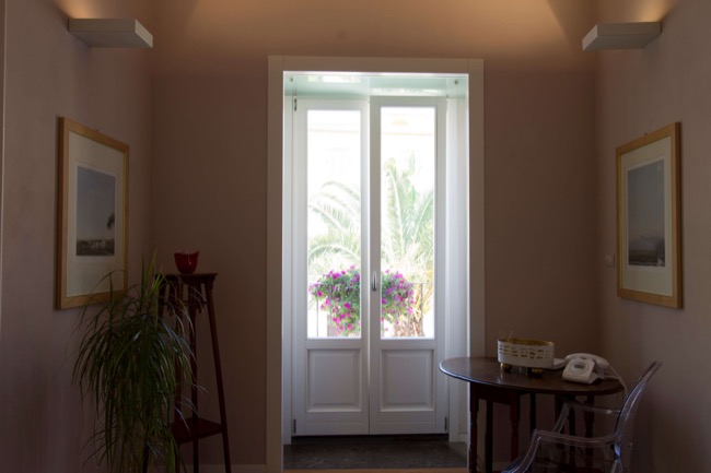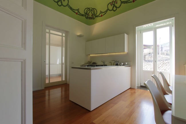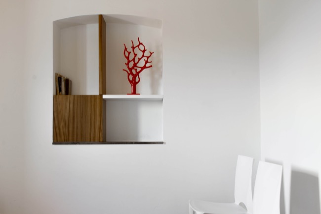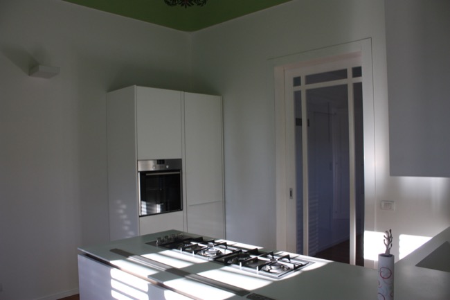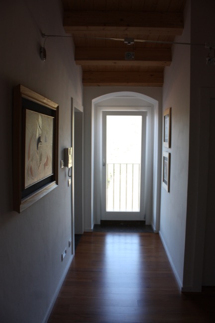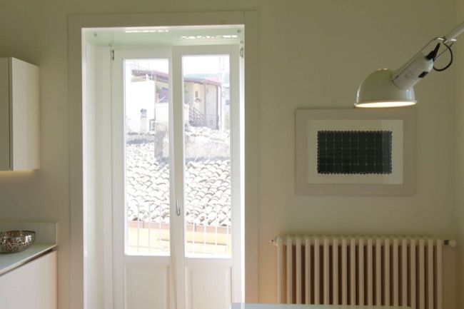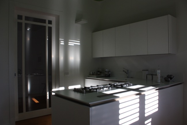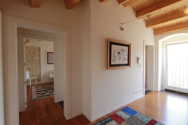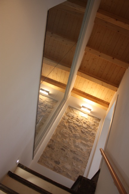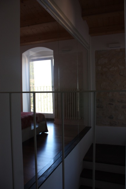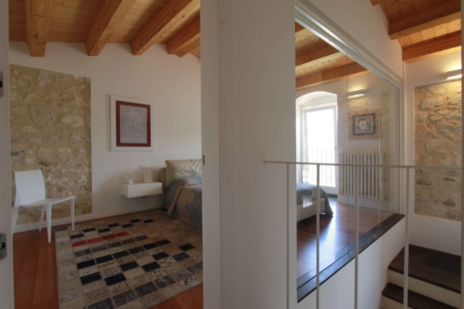 All’interno dell’unità residenziale è stata mantenuta l’originaria distribuzione dei vani sia per la consistenza delle tramezzature portanti realizzate interamente in pietra locale, sia per la razionalità propria degli ambienti che ben si adattavano alla nuova distribuzione funzionale. Mi sono limitato ad apportare modifiche ai servizi igienici per ovvie necessità legate al funzionamento dell’impianto termo – sanitario. Nel piano sottotetto, invece, sono state eseguite le modifiche più significative consistenti nel rifacimento della copertura e nella modifica distributiva dei vani della zona notte. L’intervento di riuso mi ha permesso l’inserimento di elementi in trasparenza, conferendo leggerezza e luminosità a tutti gli spazi abitativi valorizzando al tempo stesso quegli elementi originari dell’immobile. Ho preferito lasciare alcuni ambienti con l’originale pavimento in pietra pece, in contrasto con la nuova e predominante pavimentazione in parquet in essenza di teak. Per finire, l’arredamento dei vani l’ho curato eseguendo una lettura rigorosamente contemporanea e minimalista.