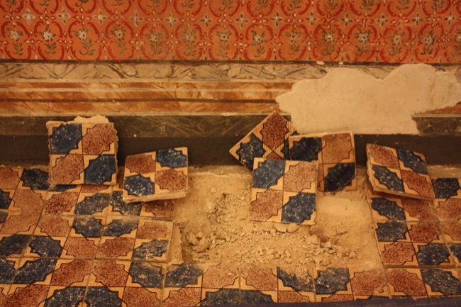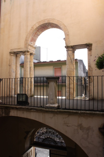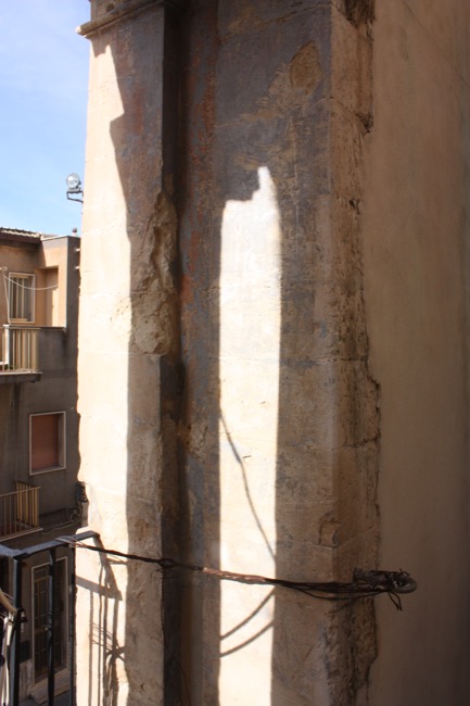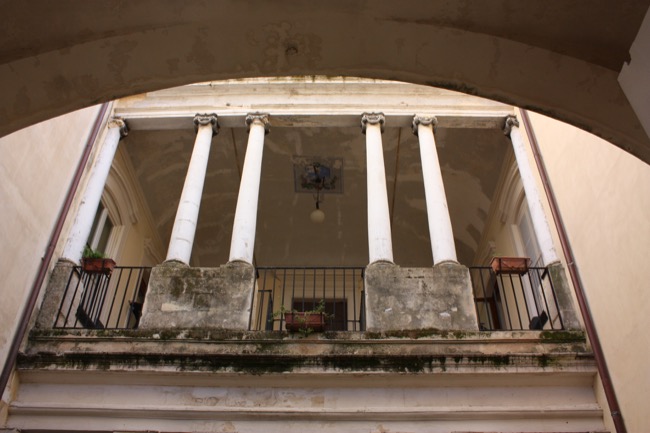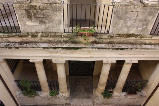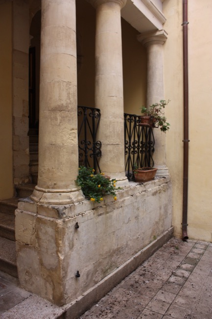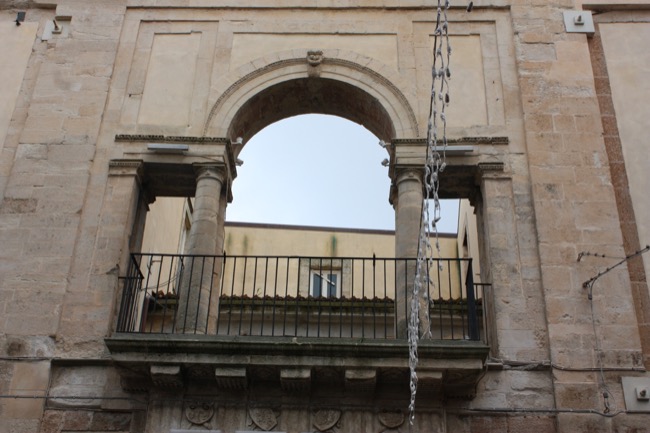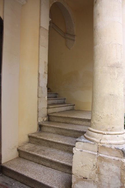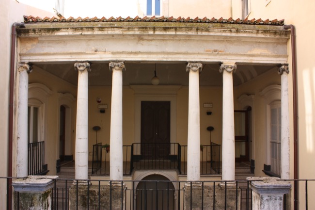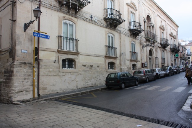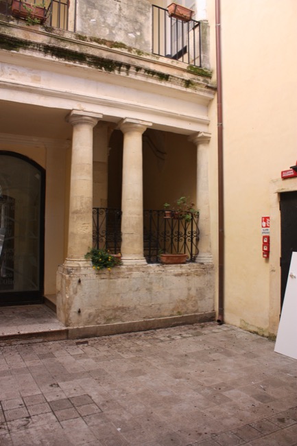 Nell’ottobre 2011, fui incaricato di redigere un progetto di riqualificazione dell’androne scala e dei locali ad esso connessi di Palazzo Montesano nella Cittadina di Chiaramonte Gulfi. Il Palazzo, ubicato nell’omonima via nel centro storico è databile alla fine del 1700, e pur non avendo dettagliate notizie storiche in merito, se ne deduce l’epoca di realizzazione in quanto facente parte delle ricostruzioni avvenute dopo il terremoto del 1693. La tipologia della struttura è regolare e simmetrica. Il Palazzo mantiene un mediocre stato di conservazione, e durante l’analisi preliminare dei locali sono stati evidenziati gli elementi necessari per redigere un progetto di restauro ed al tempo stesso di riqualificazione, finalizzando l’intervento ad una migliore ricettività dell’intera struttura in relazione alle destinazioni d’uso museali e di spettacolo dei locali presenti ai vari piani del palazzo. La Corte interna d’ingresso attualmente ha una pavimentazione con piastrelle in cemento, probabilmente di recente posa e fattura oggi soggette ad un ristagno delle acque meteoriche provenienti dalla copertura a tetto. Nel progetto ho previsto la rimozione della pavimentazione attuale e la conseguente pavimentazione con basole di calcare duro di diverso formato. A tal proposito, ho previsto il rifacimento del marciapiede nel tratto compreso tra le due lesene mediane del palazzo, dando così ai visitatori una percezione visiva immediata dell’area d’ingresso all’edificio monumentale. L’intervento, benché approvato dagli uffici competenti, non è stato ancora realizzato per mancanza di fondi.