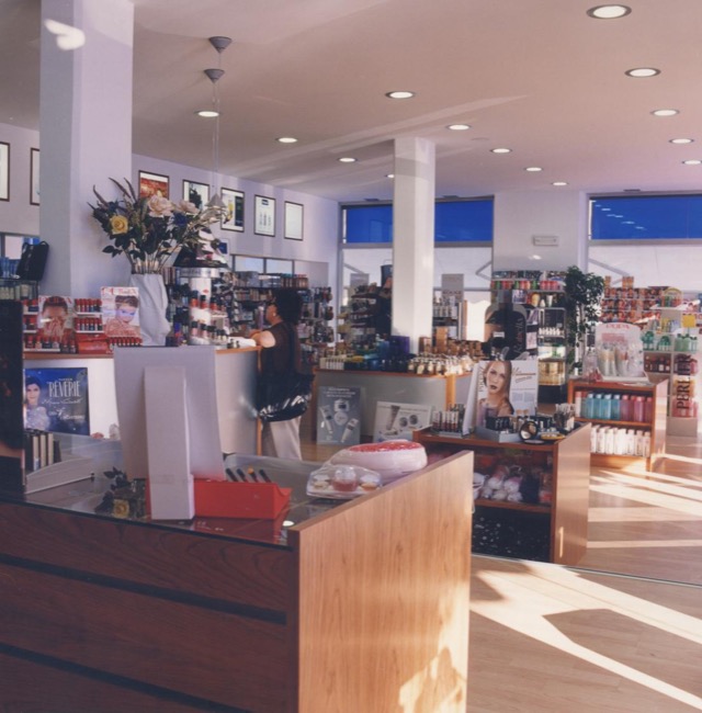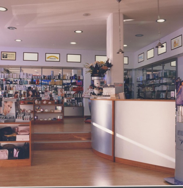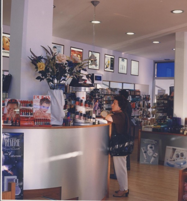 Nel 1998 sono stato contattato da un cliente per la realizzazione di una profumeria a Ragusa. Il locale ubicato ad angolo con le sue ampie aperture sulla strada, permetteva varie soluzioni progettuali. Proposi pertanto di dare più luce e trasparenza possibile all’attività commerciale, evidenziando le vetrine espositive e la zona vendita all’interno. Quest’ultima, infatti, è stata realizzata mediante un desk di vendita centrale e semicircolare disposto in modo da inglobare un pilastro esistente, e con lo stesso principio sono state realizzati gli altri arredi espositivi tutti in listellare di ciliegio, permettendo una comoda fruibilità all’interno dell’esercizio commerciale. Per valorizzare i prodotti in vendita, infine, ho creato un controsoffitto perimetrale dove sono stati inseriti dei riquadri regolari e retroilluminati, di gradevole impatto visivo.