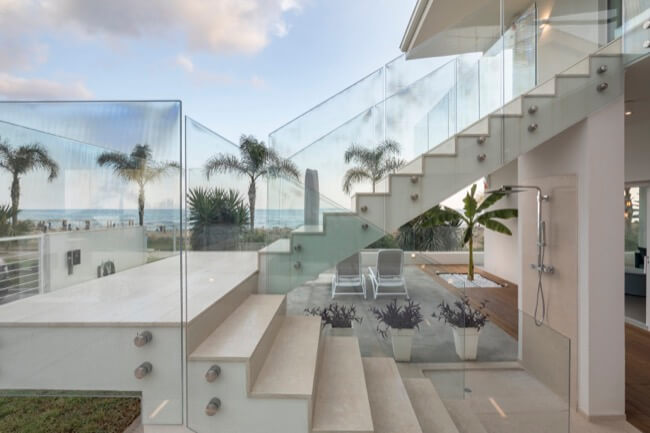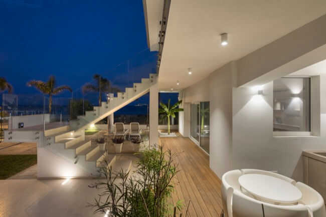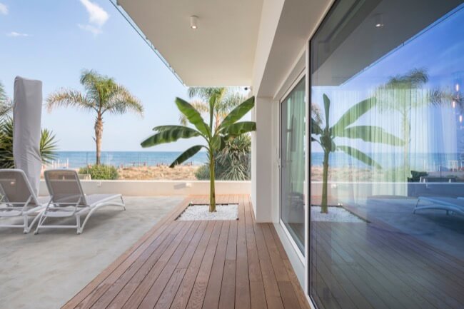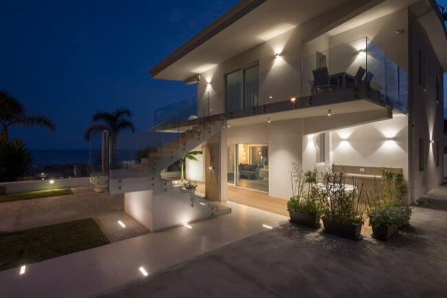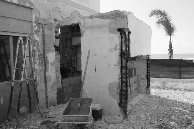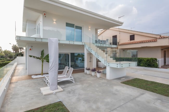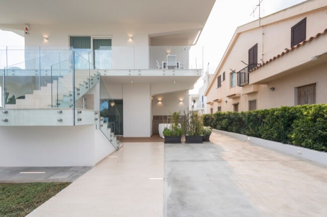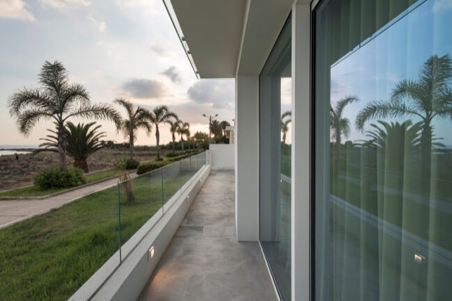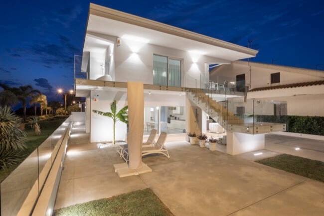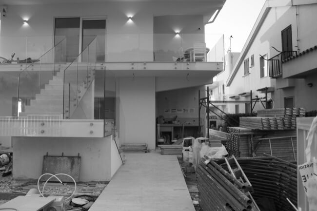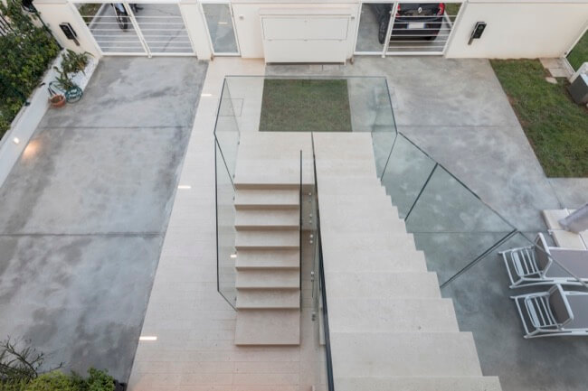 Nell’estate del 2020 una coppia di amici, con la volontà di ristrutturare la loro villa al mare, mi affidò l’incarico del progetto di recupero e riuso dell’intera struttura. L’intervento di ristrutturazione edilizia che ne è eseguito, ha interessato sia le strutture sia l’involucro edilizio. La villa, realizzata alla fine degli anni ’60 in una frazione balneare nel territorio del comune di Scicli, nel corso degli anni aveva subito alcune trasformazioni di carattere distributivo che ne pregiudicavano la funzionalità sia al piano terra, sia al primo piano. Mantenendo le rispettive pertinenze esclusive, ciascuna per piano, ho ritenuto di apportare delle modifiche funzionali senza operare particolari eccessi, conferendo leggerezza ad un volume appesantito all’origine da inferriate in alluminio anodizzato e superfetazioni di ogni genere. Al piano terra è stato recuperato il portico di ingresso trasformandolo in una zona living a servizio dell’unità residenziale esistente, mantenendo la stessa quota tra la zona solarium esterna con vista mare e l’ambiente interno destinato a zona notte e servizi. Al piano primo è stata mantenuta la distribuzione funzionale originaria, apportando soltanto alcune modifiche alle aperture esistenti in funzione dell’esposizione naturale degli ambienti di vita dell’unità residenziale. La scala centrale di accesso al primo piano è diventata il punto forte dell’organismo edilizio. Essa, originariamente a rampa unica, è stata articolata in modo da mantenere indipendenti le due unità residenziali tra piano terra e piano primo. Ciò ha permesso di evidenziare le due pertinenze esclusive mediante diverse pavimentazioni in cemento quarzo e Decking, marcando un percorso pedonale in pietra libanese spazzolata di raccordo alla scala stessa. Aiuole verdi a pavimento e trasparenze sui prospetti rigorosamente di colore bianco, hanno reso l’opera particolarmente leggera.